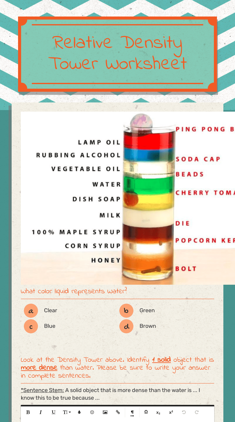 Give your child a boost using our free, printable 5th grade science worksheets. Students will have a mass, volume, and density worksheet to complete . Browse density worksheet science resources on teachers pay teachers, a marketplace trusted by millions of. Densities of common substances @ 20°c. The ngss structure and properties of matter for 5th grade, .